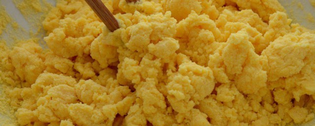 4、加糖和酵母水將玉米粉和面粉拌勻。