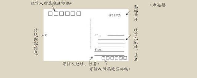 明信片右邊第三行用於填寫寄件人地址信息和姓名,寄件人信息可填寫,也可不填寫。如果無第三行橫線,可以直接放空或是寫在收件人信息下方。