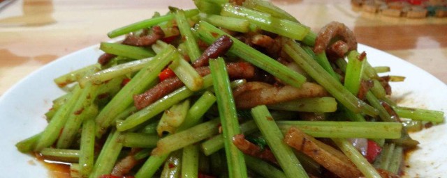 1、將豬肥瘦肉批切成薄片,再將肉片切成絲狀;芹菜摘去葉,削去根,洗凈後切成段。